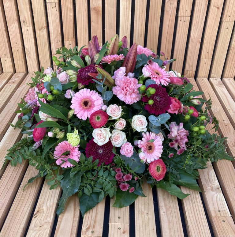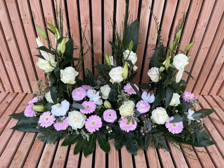 Nous en assurons la livraison auprès de la personne défunte sur son lieu de repos, au funérarium, à son domicile ou sur le lieu de culte.