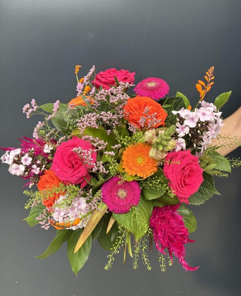 Conseils pour profiter au maximum des bouquets du Jardin Fleuri : dès réception de votre bouquet, avant de le mettre à l’eau, couper les tiges en biseau (1cm suffit). Puis tous les deux jours, recouper les tiges en biseau et changer l’eau. Éviter la chaleur et les courants d’air.